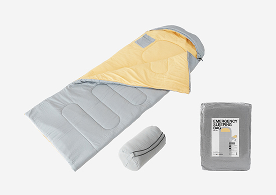 製品・サービス > 防災 > 非常用圧縮寝袋 コンセプト | 特徴・選ばれる理由 | ラインナップ 広げて毛布としても使用できる、やわらかフリース毛布の寝袋非常用圧縮寝袋 肌触りの良いフリース毛布の寝袋を、薄型コンパクトサイズに真空パックしました。大勢の人が集まる避難所で安心して過ごせるプライバシー保護&頭まで覆って暖気を逃がさない防寒対策フード付き。貴重品を収納できるファスナー内側のフタ付きポケット。内外両側から開閉可能できるダブルファスナーで足元の温度調整も可能。収納・保管・持ち運びに便利なマルチバッグ付属。避難時に役立つ機能を搭載しました。 特徴・選ばれる理由 薄型コンパクト真空パック肌触りの良い3層構造の寝袋(①内層やわらかフリース毛布 ②中層わた ③外層なめらかピーチスキン生地)を、薄型コンパクトサイズに真空パックしました。広げて毛布としても使用できます。 プライバシー保護&防寒フード大勢の人が集まる避難所で、安心して過ごせるプライバシー保護フード。頭まで覆って、暖気を逃がさない防寒対策としても活用できます。 防犯対策ポケットファスナー内側の右肩部にフタ付きポケットを設けました。休息・就寝時の防犯対策として、身近に貴重品などを収納しておくことができます。 ダブルファスナー&マルチバッグ内外両側から開閉可能できるダブルファスナーで足元の温度調整も可能です。収納・保管・持ち運びに便利なマルチバッグも付属しています。 非常用圧縮寝袋広げて毛布としても使用できる、やわらかフリース毛布の寝袋を薄型コンパクトサイズに真空パックしました。プライバシー保護&暖気を逃がさない防寒対策フード。貴重品を収納できるフタ付きポケット。内外両側から開閉可能できるダブルファスナー。収納・保管・持ち運びに便利なマルチバッグ。避難時に役立つ機能を搭載しました。 商品名非常用圧縮寝袋 品番ESB-700 希望小売価格7,500円+税(1枚) サイズ寝袋:80×220cm(185cm+フード35cm)梱包:W620×D420×H250mm(10枚入) 重量寝袋:約1,330g(1枚)梱包:約14㎏(10枚入) 入数10枚 出荷単位10枚 材質ポリエステル100% 色外側生地グレー/内側毛布ベージュ 生産地寝袋:中国/真空圧縮加工:日本 購入ページ 非常用圧縮寝袋 資料
